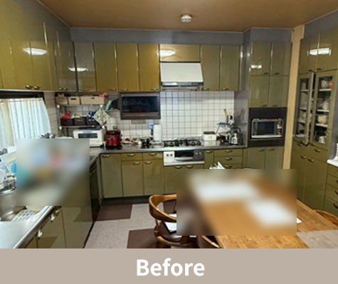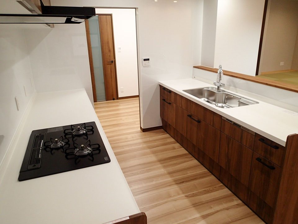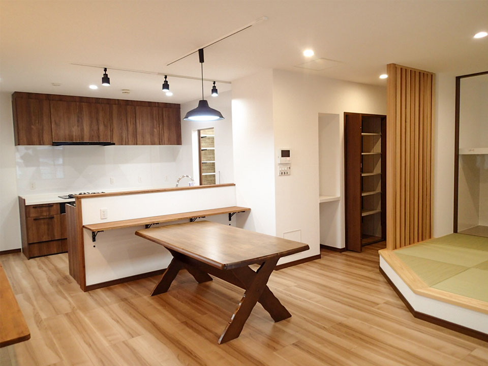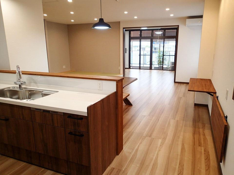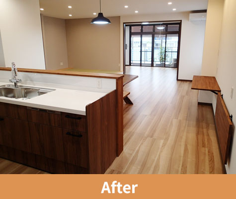 キッチンへの動線が直通となったことで、空間全体にゆとりが生まれ、開放感のある住まいへと一新。